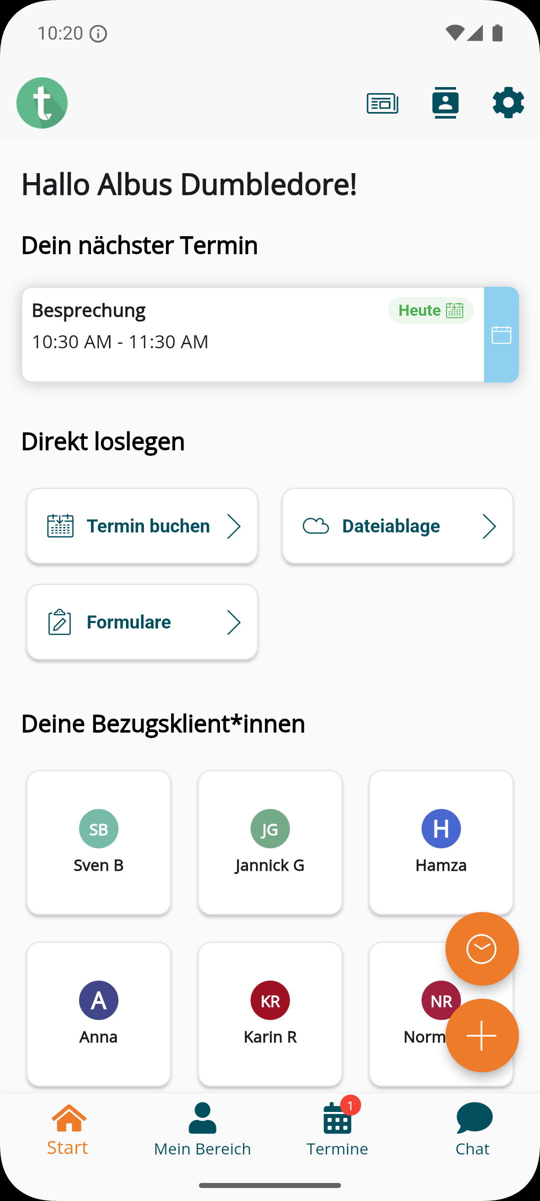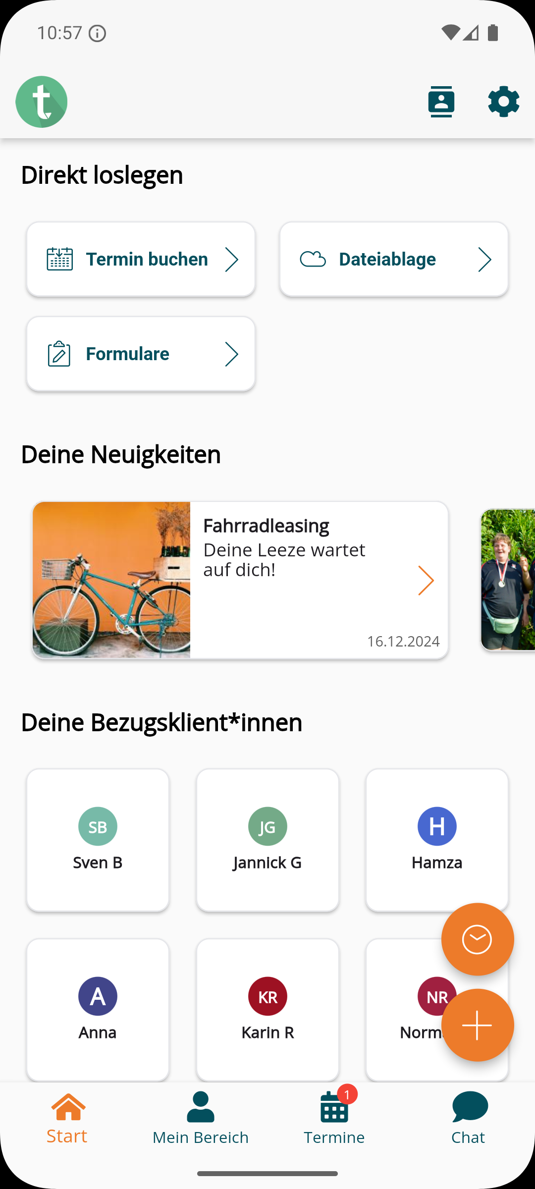Mitarbeiter*innen sehen ihre Bezugsklient*innen direkt auf der Startseite.